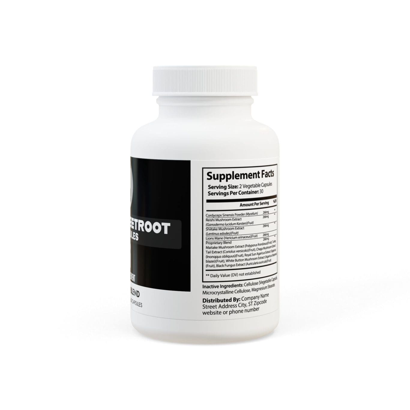 Ingredients: Organic Beetroot Powder (beta vulgaris). Inactive Ingredients: Cellulose (Vegetable Capsule), Microcrystalline Cellulose, Magnesium Stearate.